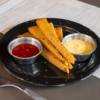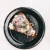 Muzzarella, parmesano, cebolla, cebolla morada, eneldo y ciboulette.