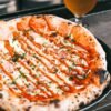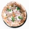 Salsa de tomate, muzzarella, jamón, salsa de morrones, papas pay, sbrinz y ciboulette.