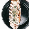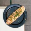 Mostaza, muzzarella, alioli de hinojos asados, pepinillos agriculces y eneldo.