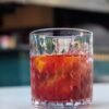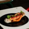 Base de salsa de tomate, kimchi, portobellos, kale crocante y crema de castañas de Cajù.